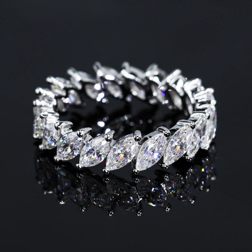 Material: Prata 925 com camada de platina, ródio e ouro 18k Pedra: Moissanite de 3*6mm Lapidação: Marquise