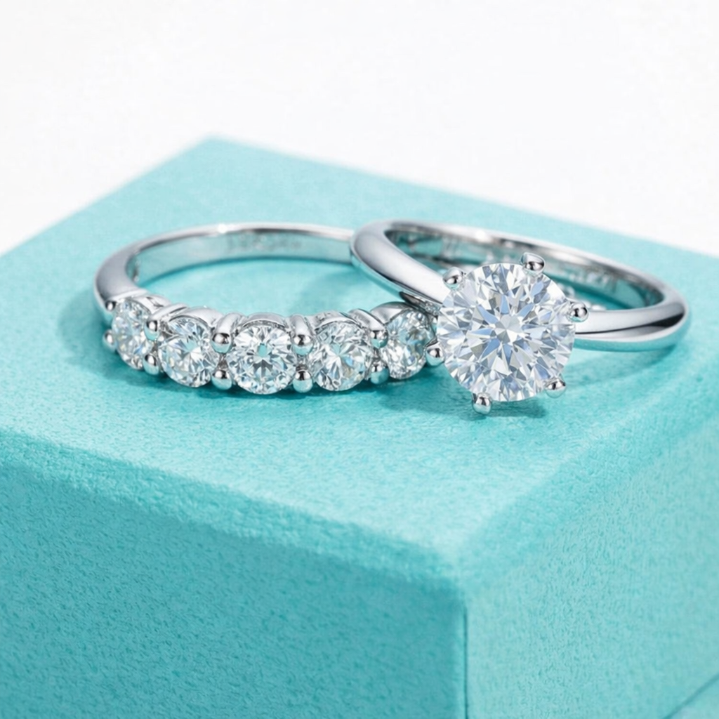 • Pedra central de 2 quilates em moissanite